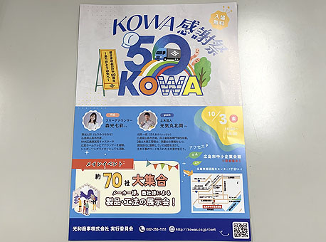 10月3日に広島市中小企業会館で開催された光和商事株式会社創立50周年イベント「KOWA50周年感謝祭」に出展しました。